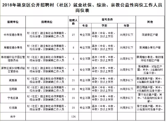 阜阳这个地方公开招聘124名!高中学历即可报名…阜阳招聘
