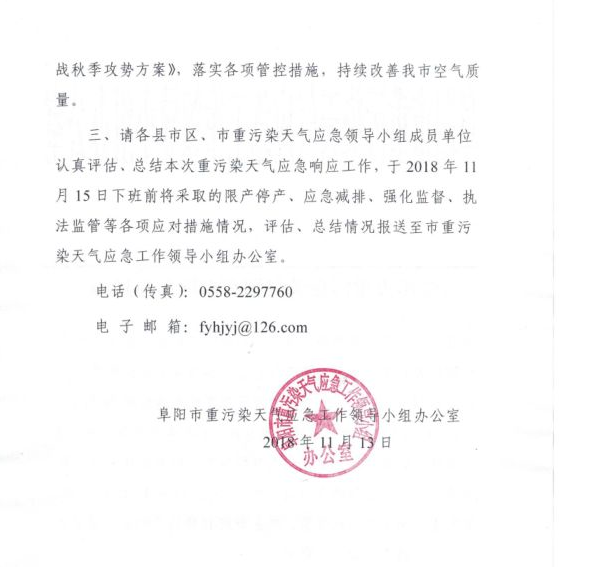 阜阳市重污染天气预警解除信息