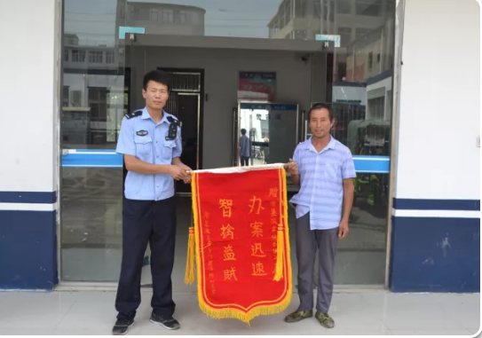 滑集派出所和刑警大队在日常工作中进行摸排寻找,始终没有线索,但是民警们没有忘记刘某某丢失的三轮车。2018年6月28日,民警终于在阜南县段营镇查到赃物下落,滑集所民警当天到阜南县将车开回滑集所,并在次日退给了受害人,受害人面对失而复得的三轮车,激动之情难以言表,将一幅锦旗交到民警的手中。