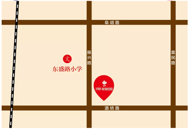 5.东盛路小学:关庄社区前六里、后六里、袁大庄、袁小庄郝庄,肉厂职工生活区,致富路社区王楼、陈庄两个自然村。新建居民小区范围:西至铁路、南至九坊路、北至阜胡路、东至富民路。